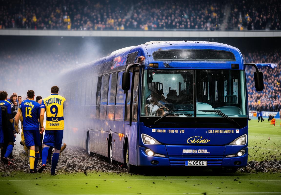 6. 大巴车被迫转移:在警方赶到现场后,斯特拉斯堡足球队的大巴车被迫转移至安全地带。车内球员和工作人员在经历了这场惊心动魄的袭击后,情绪极度不稳定。他们在警方的保护下,离开了事发地点。