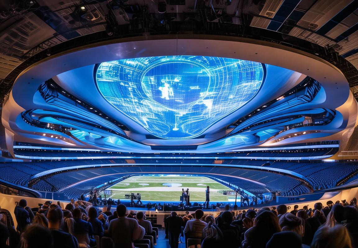 他进一步解释:“我们的设计团队与全球顶尖的科技公司紧密合作,确保每一项技术都能够达到最佳效果。全息投影技术不仅能够带来前所未有的观赛体验,还能根据不同赛事的需求,调整投影内容和效果,让每一场比赛都充满新鲜感。”